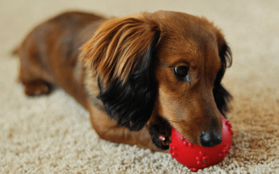 Your puppy's baby teeth will start to fall out at around four months of age.